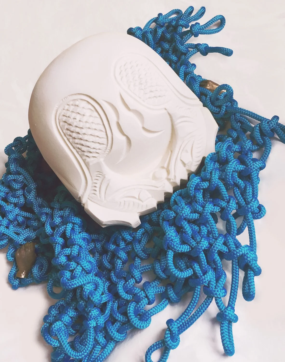 Mokugyo, 2019, polyurethane , CNC-machined chemiwood, cast bronze, marine rope