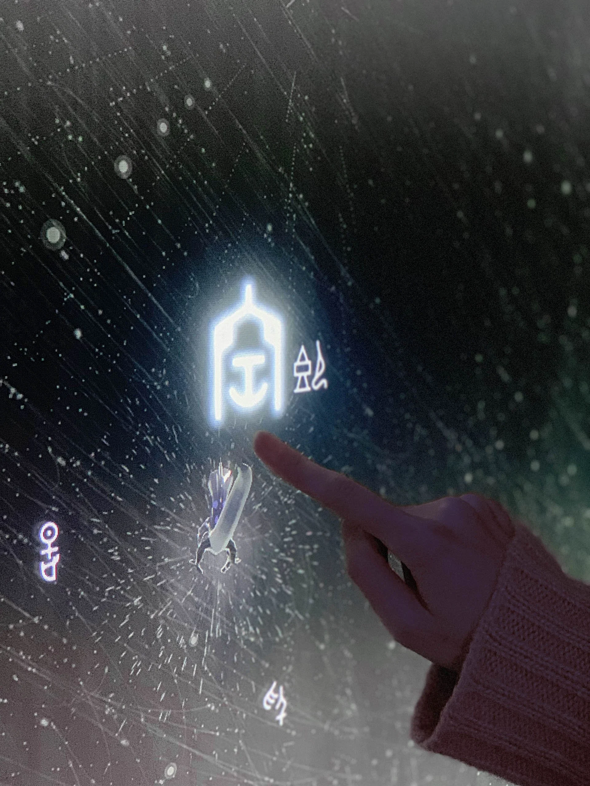Touchscreen interaction detail. Installation view at ICMS (Edinburgh, UK)